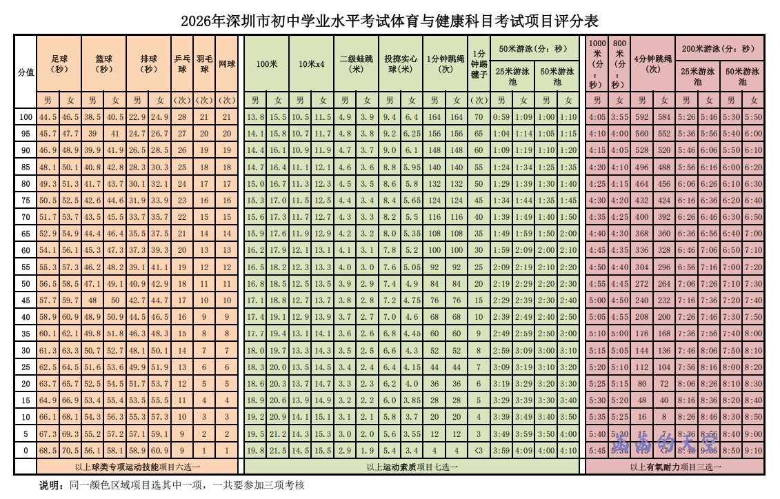 2.2026年深圳市初中学业水平考试体育与健康科目考试项目规则和评分标准